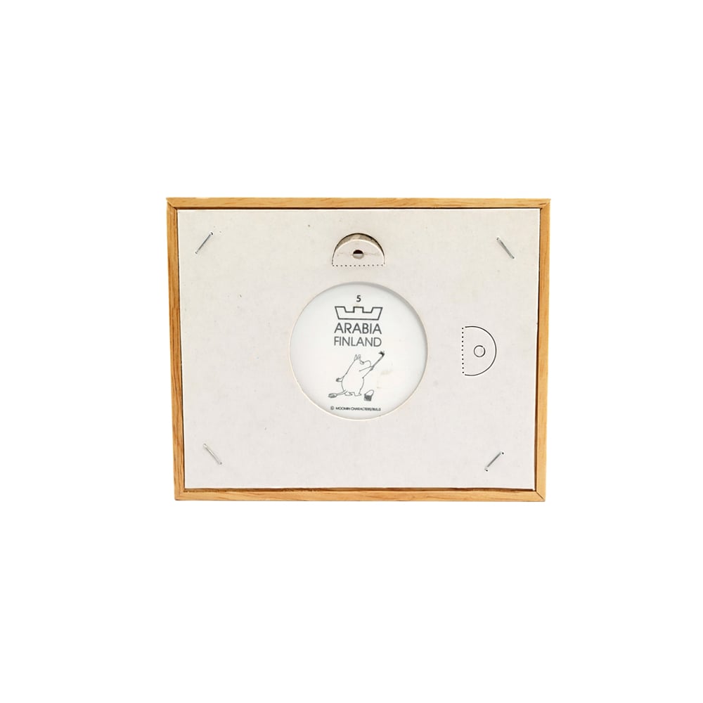 Moomin framed plate Evening at Home is a part of framed plate series made by Arabia in the 90’s. These framed plates were designed by Camilla Moberg. The Moomin framed plate series has a total of six different framed plates. The wooden framed plates were sold from 1991 until 1994.