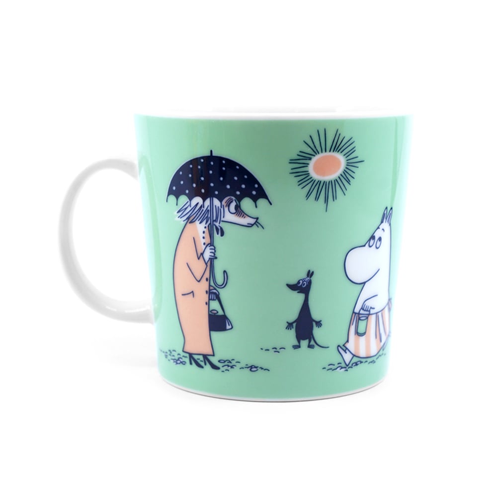 The illustration on the ABC I Moomin mug shows the Inspector as the main character. On the other side of the mug you can find both Moominmamma and Fillyjonk.