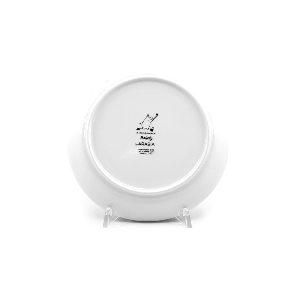 The Tooticky violet Moomin plate was released in 2016. The plate’s artwork was inspired by Tove Jansson’s novel Moominland Midwinter. This violet Moomin plate replaced the earlier blue Tooticky plate after it was discontinued. The illustration on the plate shows Tooticky playing the barrel organ, while Little My dances in the foreground. You can also spot the swimming house in the background.