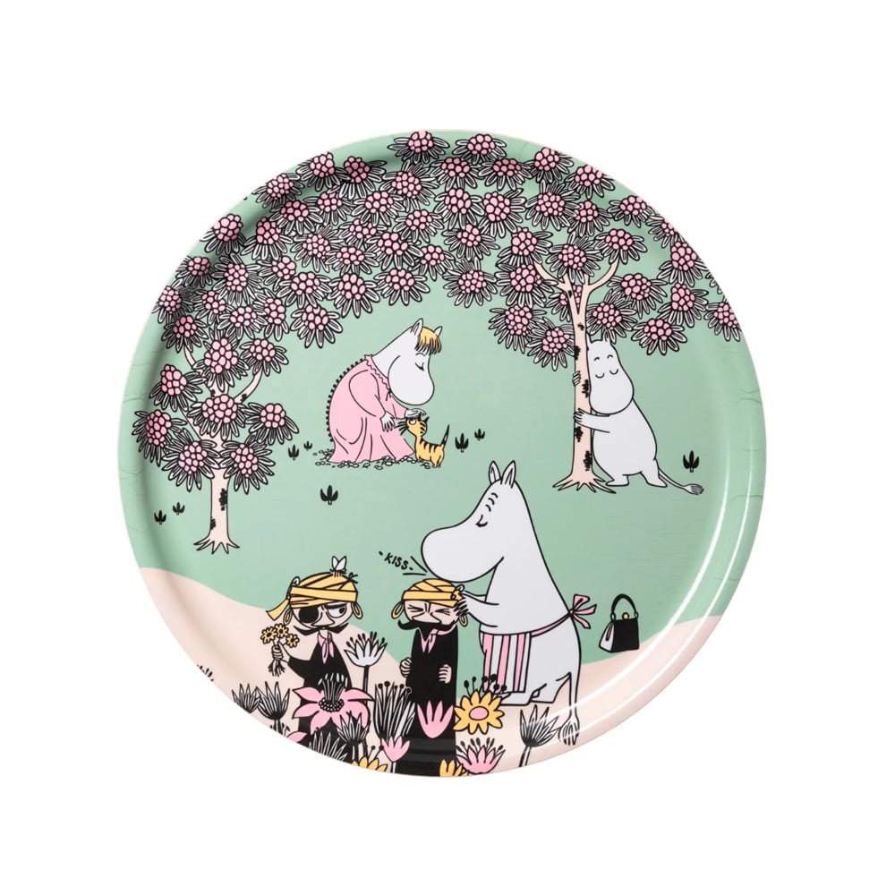 Moomin tray Loving Care is Moomin Arabia’s new release for 2026 and will become part of the continuous production line. The tray belongs to the Moomin Arabia Classics series. The Loving Care collection was launched simultaneously with the Sweethearts collection. The tray is 35 cm in diameter.