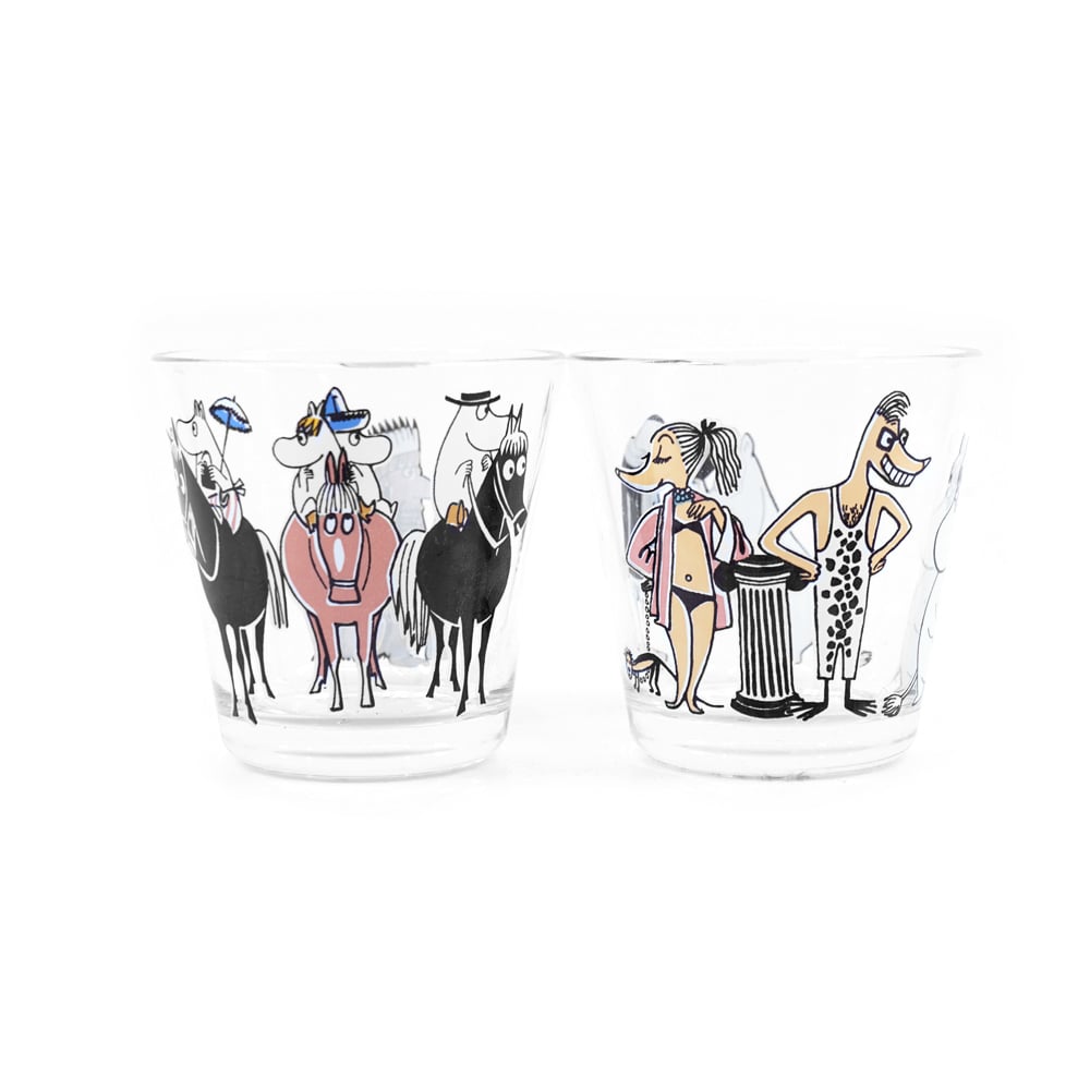 ムーミン ジュースグラス Wild West & Rivieraは、Iittalaから販売された2,1dl(210ml)のグラスのペアセットです。グラスの高さは約8cmです。