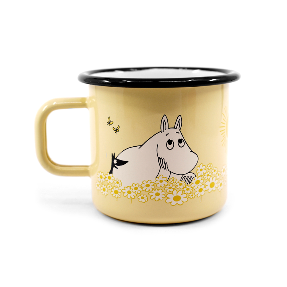 Muumimuki Muurla Kukkaniitty emalimuki tuli myyntiin ainoastaan K-ryhmän kauppoihin. Kirkkaan keltaisessa mukissa esiintyy Muumipeikko, Pikku Myy ja kirjaan uppoutunut Niiskuneiti. He ottavat rennosti kukkaniityllä.
