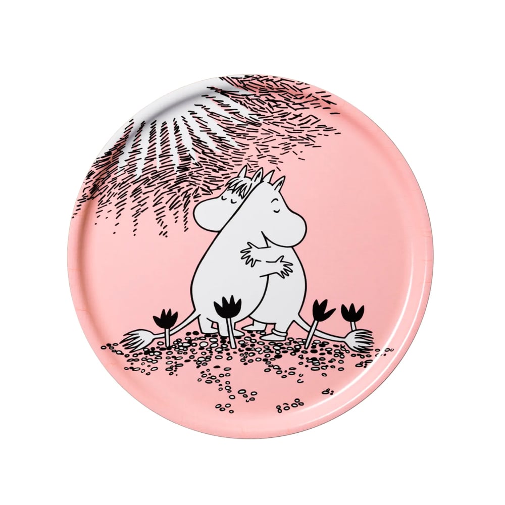 Muminbrickan Kärlek 30 är en del av den speciella jubileumskollektionen Kärlek 30 för år 2026. Kollektionen Kärlek 30 firar den ikoniska Kärlek-muminmuggens 30-åriga resa. Brickan är tillgänglig fram till den 31 december 2026 eller så länge lagret räcker. Brickans diameter är 35 cm.