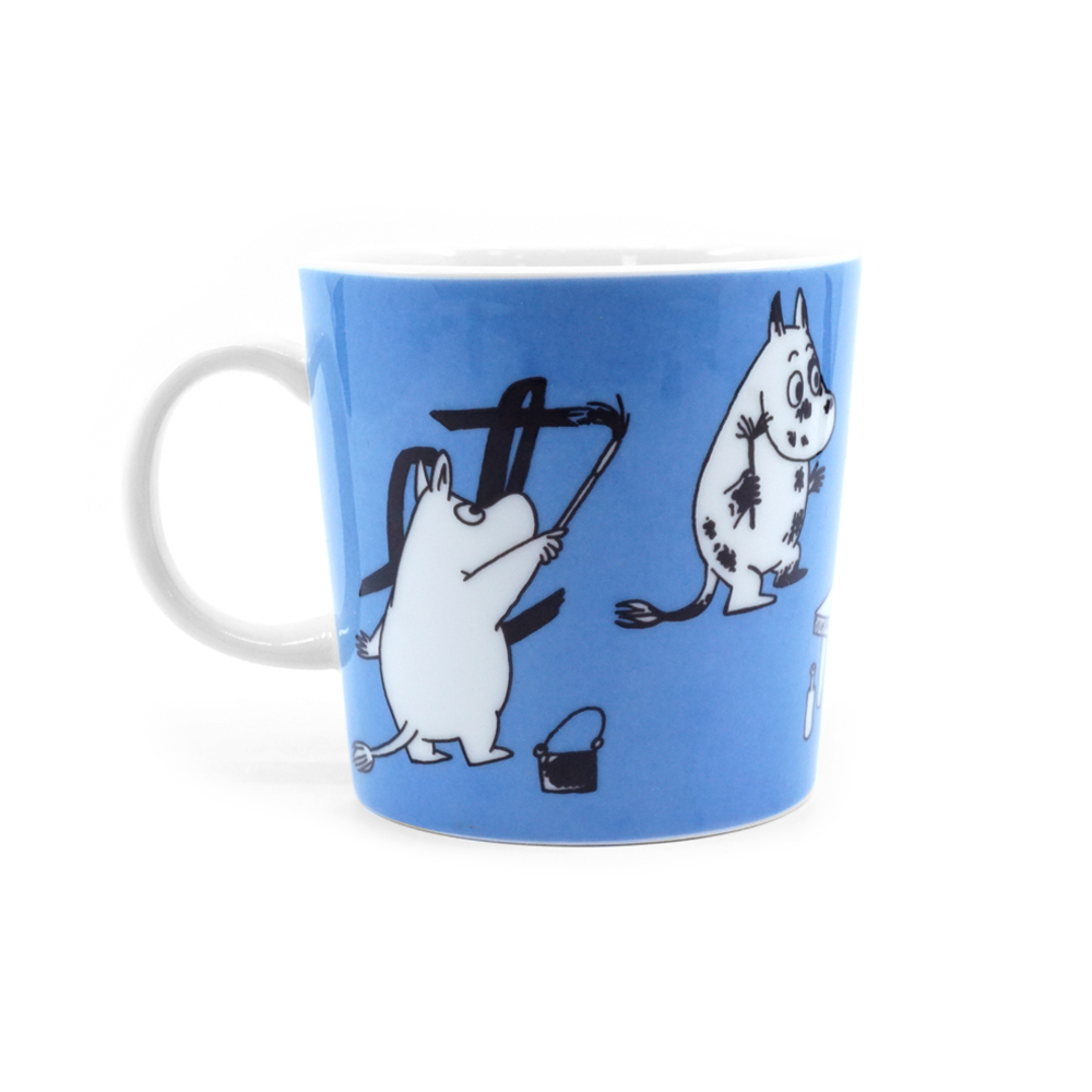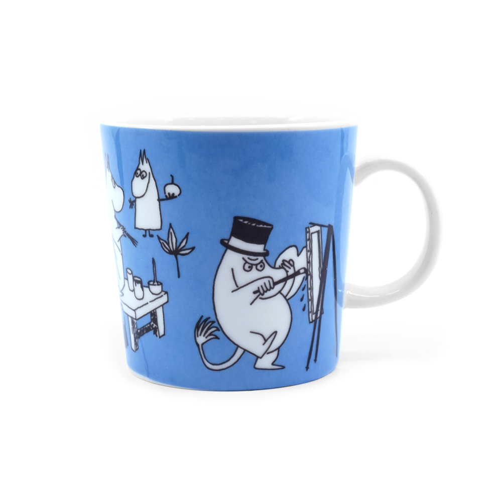 Muminmuggen Mugg blå är även känd under namnet Målande mumintroll. En av muggens ursprungliga illustrationer kommer från logotypen som Tove Jansson ritade till omslagen på sina serieböcker, samma bild som också finns på bottenstämpeln av Arabias muminprodukter. Kolla videon på Muggen blå på vår Youtubekanal.