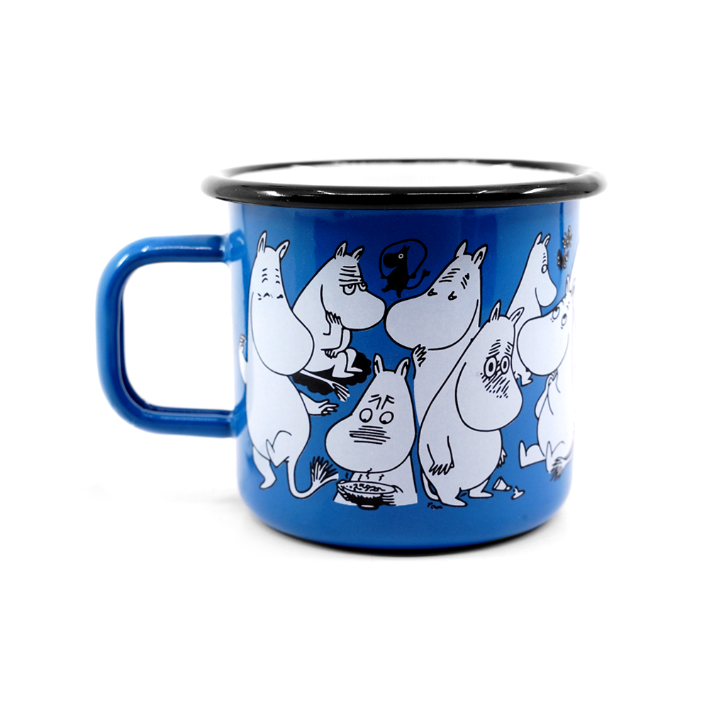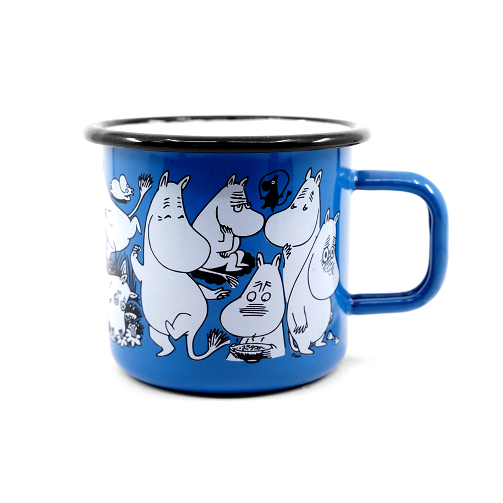 Ytan på Muurlas muminmuggar, tillverkade av kolstål, har en dubbel emaljbeläggning. Förutom vid matbordet passar dessa muggar också utmärkt för utomhusbruk. Muggarna är utmärkta för vandring på grund av att de är lätta och hållbara. Den normala volymen för Muurlas emaljmuggar är 3,7 dl, men det finns också mindre och större versioner av Muurlas muminmuggar. Muurlas muminmuggar är handgjorda vilket betyder, att deras utseende kan variera något från individ till individ.