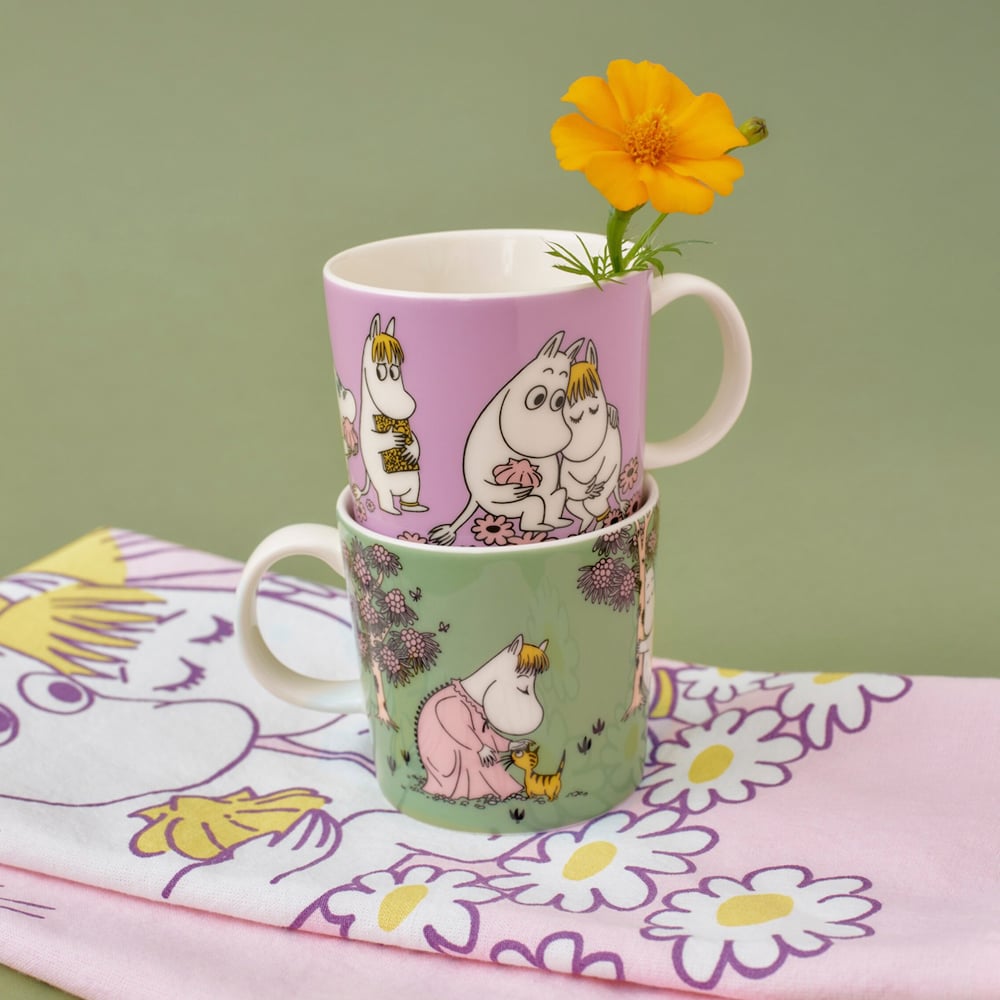 Kärlek i sina olika former är ett genomgående tema i många av Moomin Arabias nyheter i början av 2026. På Omtanke-muggen skildras kärlek genom empati och vänlighet. Illustrationerna visar mumintrollen som stöter på skeppsbrutna pirater på stranden. De kaxiga piraterna mjuknar när de möter Muminmammans milda natur. Till slut får mumintrollen piraterna att hjälpa till med trädgårdsarbetet. På den andra sidan av muggen ser man Mumintrollet som kramar ett träd och Snorkfröken som varsamt klappar en katt. Gröna och rosa nyanser leker runt hela muggen. Illustrationerna i Omtanke-kollektionen, som värmer hjärtat, bygger på Tove Janssons serier Den ensliga ön från 1955.
