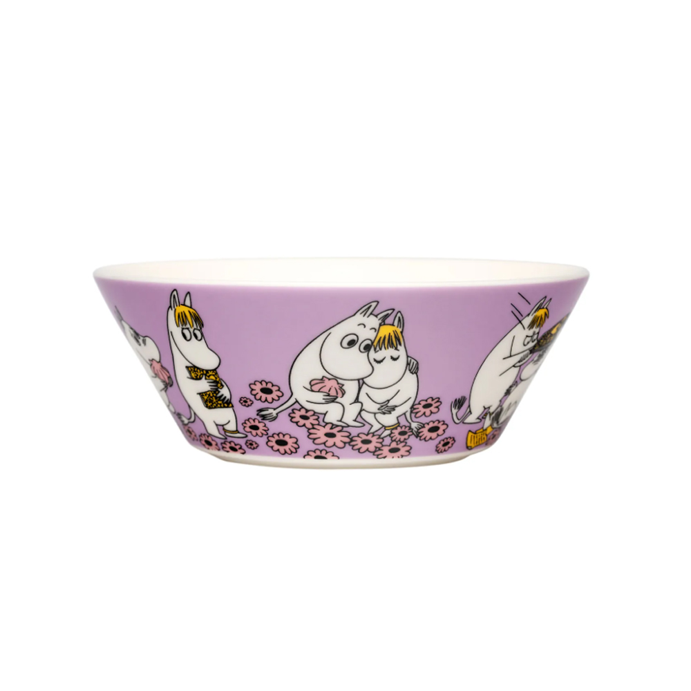 Muminskålen Förälskelse är Moomin Arabias nyhet för år 2026 och kommer att ingå i den kontinuerliga produktionen. Skålen är en del av Moomin Arabias Klassikerserie. Förälskelse-kollektionen lanserades samtidigt som kollektionen Omtanke.
