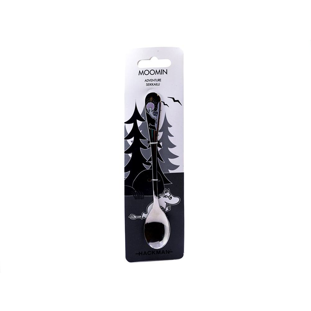 Muumi pitkä lusikka Seikkailu Muutto, Niiskuneiti. Hackmanin valmistamat Muumi-lusikat ovat valmistettu ruostumattomasta teräksestä ja kestävät konepesun. Aterinten kuvitukset perustuvat Tove Janssonin alkuperäisiin piirroksiin, jotka Tove Slotte on sovitellut aterimiin. Muumihahmot ovat kiinnitetty lusikoihin siirtokuvatekniikalla. Hackmanin ruokalusikat ja pitkät lusikat ovat noin 17cm pituisia. Kahvilusikat ovat puolestaan noin 13cm.