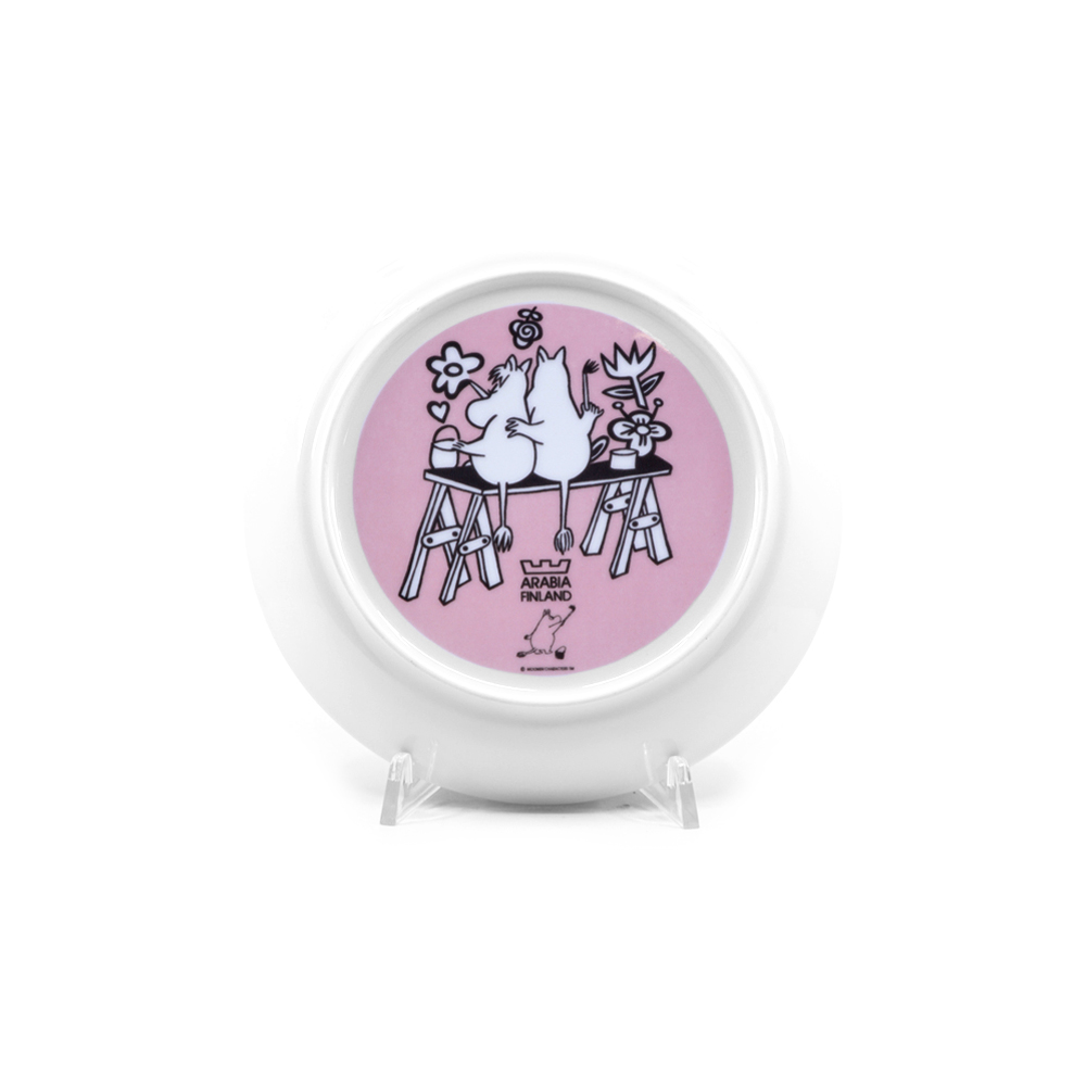Muumilautanen Rakkaus julkaistiin alun perin jo vuonna 2006 kaksipuolisena versiona, jossa lautasen kuvitus on sekä etu- että takapuolella. Myöhemmin, vuonna 2014, julkaistiin uusi yksipuolinen versio lautasesta. Molempia versioita valmistettiin vain kahden vuoden ajan. Lautasesta löytyy yksi tunnetuimmista Muumi-kuvituksista, Muumipeikko ja Niiskuneiti halaamassa, joka on Tove Janssonin sarjakuvasta Muumipeikko ja marsilaiset. Katso video saman sarjan Rakkaus-mukista Youtube-kanavaltamme.