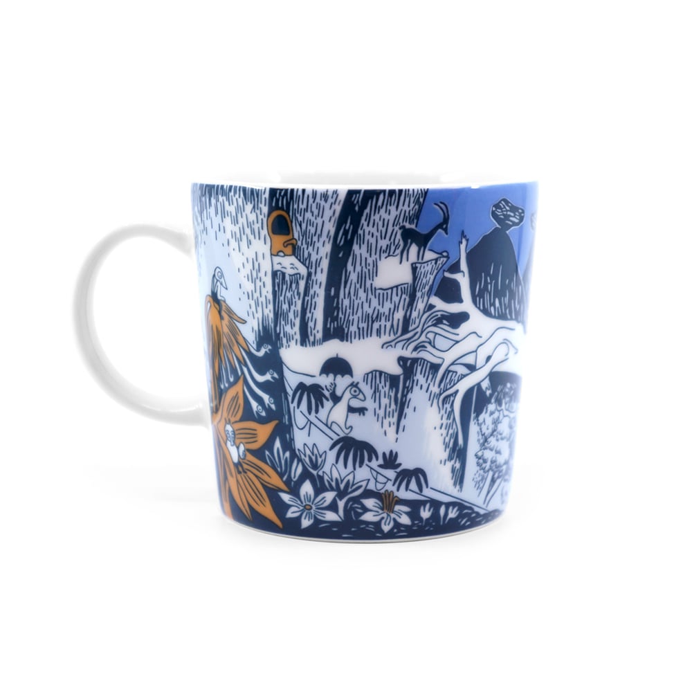 Matkalla-mukin kuvitus pohjautuu Tove Janssonin Muumipapan urotyöt -tarinaan, joka julkaistiin alun perin ruotsinkielisenä teoksena vuonna 1950. Järjestyksessään neljännessä Janssonin muumitarinassa Muumipappa toimii kertojana muistellessaan hurjia seikkailuja, joita hän nuorena muumina teki matkaseurueensa Fredriksonin, Hosulin ja Juksun kanssa. Matkoillaan kolmikko kohtasi lentämäänkin viritetyllä Merenhuiske-laivalla kaikenlaista uutta ja erikoista aina Möröstä ja Tahmatassuista Drontti Edvardiin. Muumipapan hurjat nuoruudenseikkailut Matkalla-mukin kuvituksessa kuvaavat matkustamisen synnyttämää vapaudentunnetta, jota Finnairkin on asiakkailleen mahdollistanut jo sadan vuoden ajan.