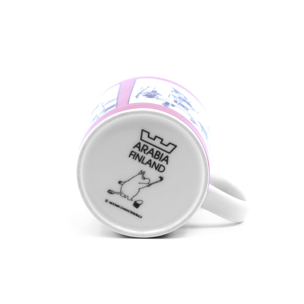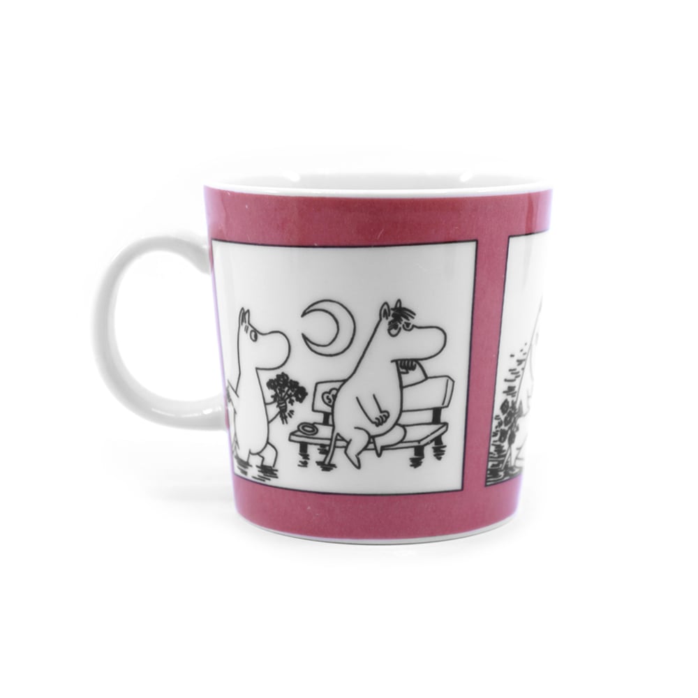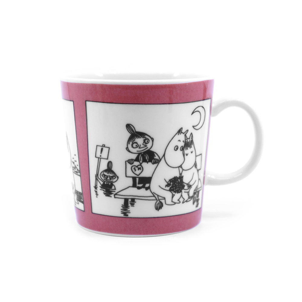 Muumimuki Muki roosa ilmestyi vuonna 1990. Muki tunnetaan myös nimellä Roosa sarjakuva. Roosa sarjakuva sekä samana vuonna ilmestynyt Vihreä sarjakuva jäivät toistaiseksi ainoiksi muumimukeiksi, joissa hyödynnettiin kokonaisen sarjakuvastripin kuvituksia kokonaisuudessaan. Erityisesti juuri sarjakuvamukit ovat sittemmin nousseet himoituiksi keräilyharvinaisuuksiksi, joista muumimukikeräilijät ovat olleet valmiita maksamaan satoja euroja. Katso video Muki roosasta Youtube-kanavaltamme.